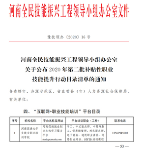 河南促进大学生就业职业培训学校(以下简称“学校”)是在我省积极推进以培训促进大学生创业,以创业促进就业的战略背景下于2014年5月正式成立,由河南省教育厅、河南省人力资源和社会保障厅主管,以服务大学生就业创业为宗旨,秉承“严谨办学、求实创新、促进就业、服务社会”的办学理念,是河南省人力资源和社会保障厅认定的省属大学生创业培训定点机构。 学校依托河南省大学生就业创业综合服务基地办学,教学场地充足,教学设备设施先进,“线上+线下”办学条件一流。学校拥有一支学历层次结构合理、理论扎实、业务精良的专兼职师资和培训研究人员队伍,拥有行业内各类专家300余名。内设党政办公室、教务部、培训部、远程培训部和信息技术部。 学校广泛开展各类培训和实训项目;开展全省大中专毕业生和社会人员职业技能提升培训;开展线上大学生创业和技能提升培训服务;开展国家信息安全水平考试(NISP)培训,直播销售员培训等;承担政府部门、学校及相关社会组织委托的各类培训和会务服务工作。学校致力于服务河南省全民技能提升行动工作,研发建设了河南促进就业创业在线学习服务平台,面向社会开展车工、茶艺师、电子商务师、制冷空调系统安装维修工、营养配餐员、物流师、快递业务员、装饰装修师等各类级别的职业工种在线教育培训。